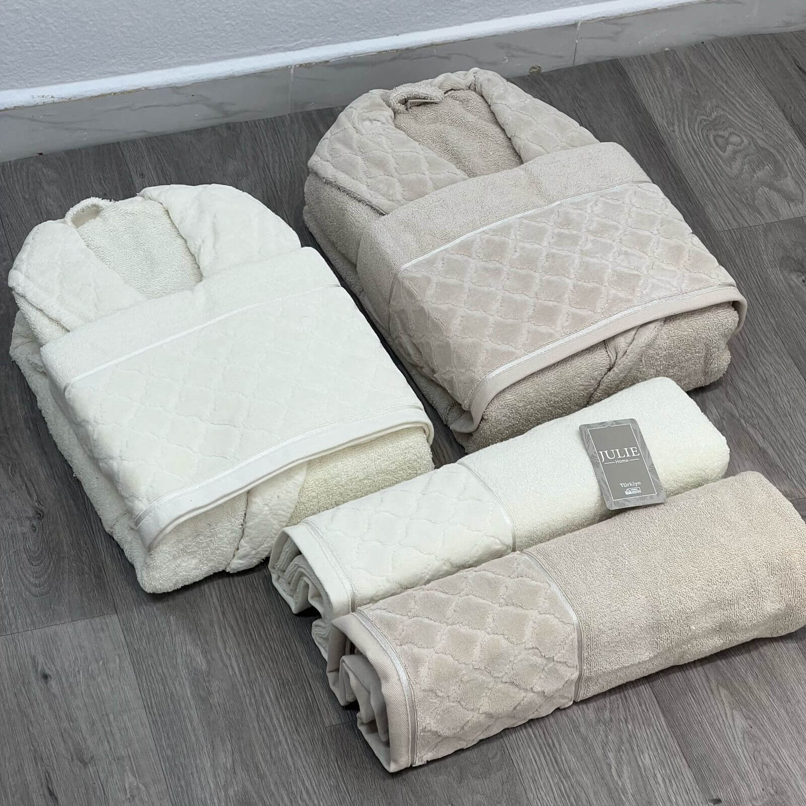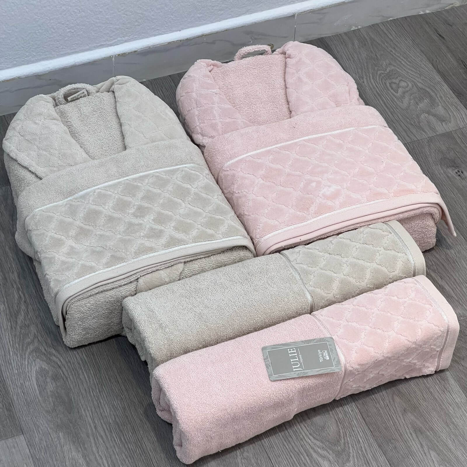 • 2 Peignoirs (1 pour femme et 1 pour homme) : Taille standard adaptée aux tailles M, L, XL et XXL. Confortables et enveloppants, ils sont parfaits pour se détendre après un bain ou une douche.